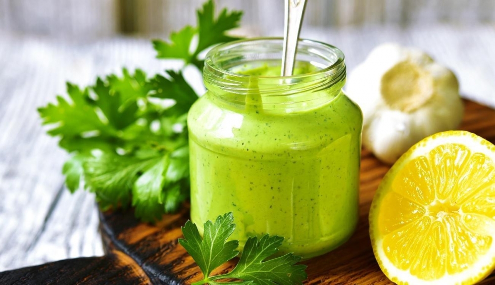 Leve ao liquidificador o creme de leite,o cheiro verde,o alho, suco de limão em velocidade baixa, vá adicionando o azeite em fio para que o molho engrosse, acerte o sal e pronto.